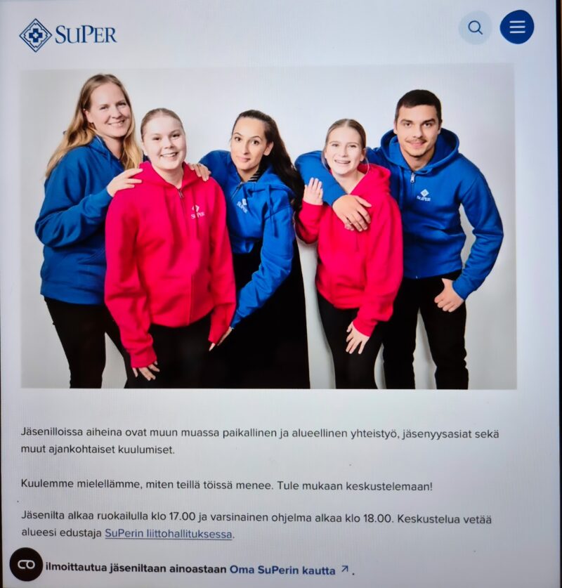 SuPer jäsenilta Mikkelissä Sokos Hotel Vaakunassa 2.3 alkaen klo:17 ruokailulla ja sen jälkeen ajakohtaista asiaa kertoo Marika Laukkanen, alueemme liittohallituksen jäsen.